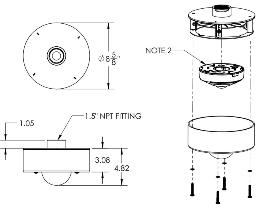 The AP 304 Dome Camera Housing is engineered to fully encapsulate virtually any modern dome camera to insure its installation meets the highest moisture, dust, and detention-grade standards. This housing features a 1.5″ NPT fitting for easy installation as a dropdown from the ceiling. Furthermore, the unit is designed with a premium brushed stainless steel finish, including a mirror-rounded edge, to boost its aesthetic appeal in high end environments. With our aim to create the smallest form factor possible, juxtaposed with the market’s need to open up the housing’s cavity large enough to accommodate a wide variety of dome camera dimensions, the AP 304 Dome Camera Housing is a perfect balance between universality and low profile form – you’ll truly appreciate the final look!